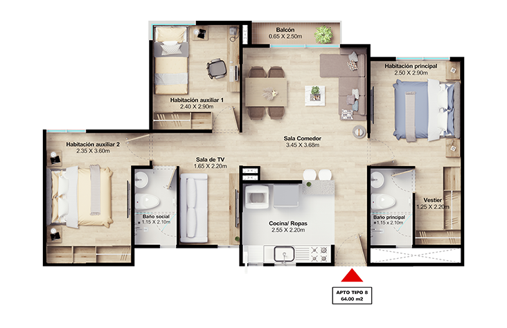 - Sala de TV, en el apartamento de 64m².