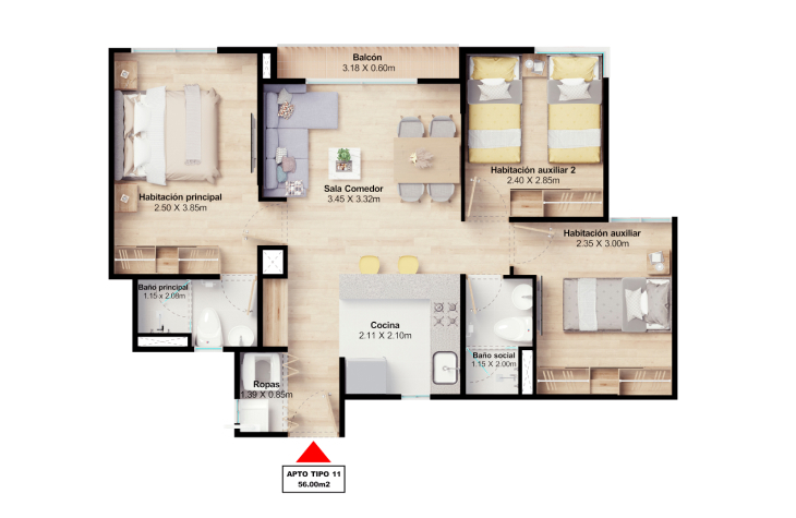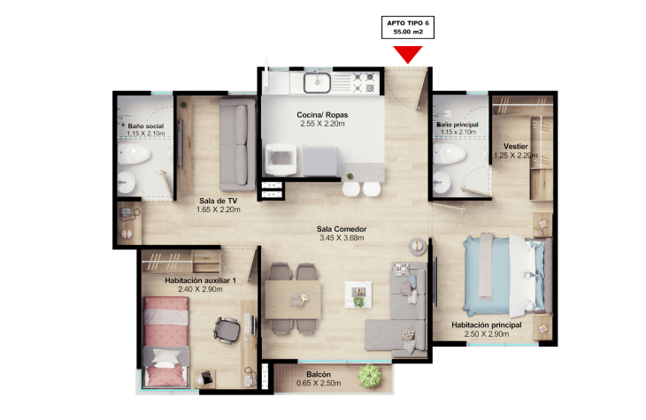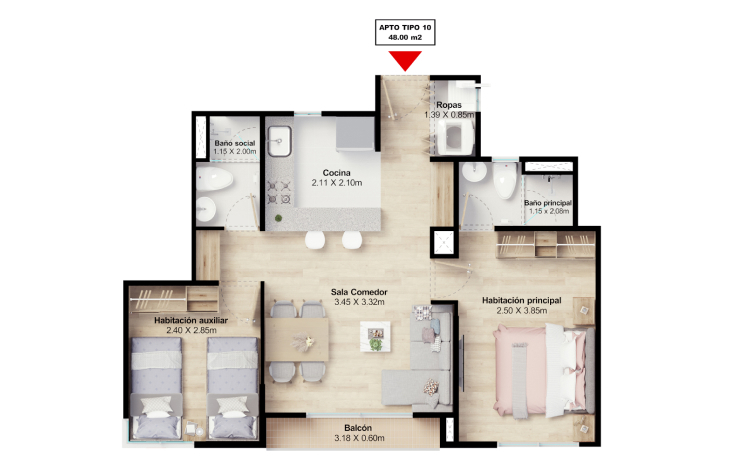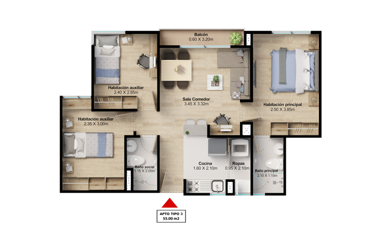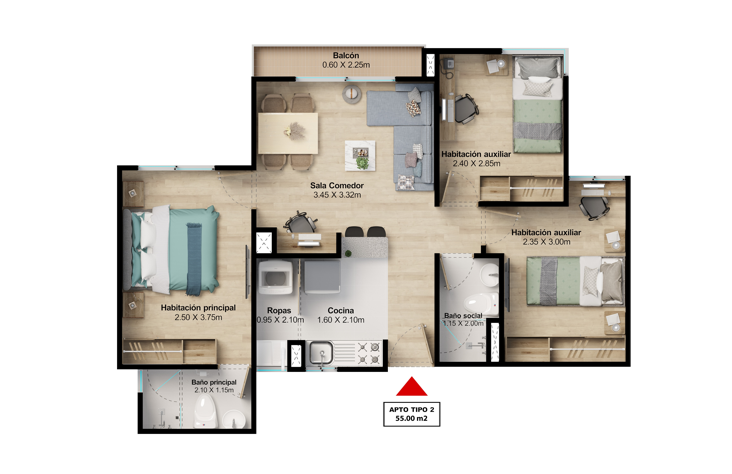 Desde 51 hasta 59.5 m²CARACTERÍSTICAS: Un diseño eficiente para tu comodidad